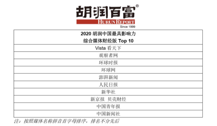 “在這個信息多元化的時代,信息渠道的權威性變得特別重要,官方媒體仍然是財經媒體中的重要組成部分。優質的原創內容是決定財經媒體競爭力的重要因素。希望我們這個榜單可以幫助讀者們梳理更好的財經媒體,同時可以幫助品牌和他們的公關公司了解哪些中國的財經媒體是最近最有影響力的”,胡潤補充道。
